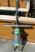 つくば市ベターリビング研究所にて吸震式アンカーボルト部の変成試験を実施。震度8以上の揺れを想定しての過酷なテストを実施。