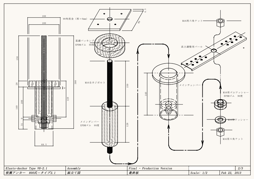 組み立て部品図■資料3 吸震式アンカーボルト 部品組立図