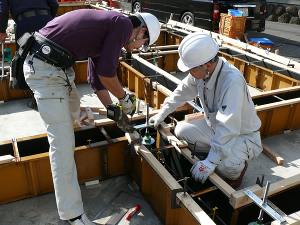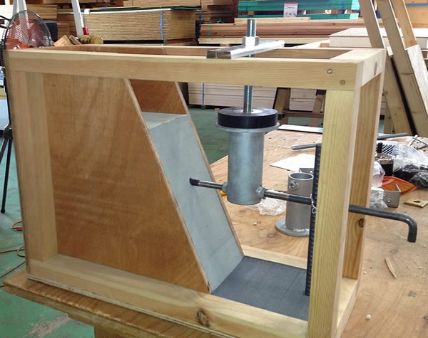 つくば市ベターリビング研究所にて吸震式アンカーボルト部の変成試験を実施。震度8以上の揺れを想定しての過酷なテストを実施。