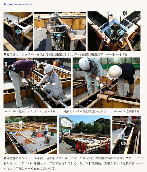 重さ約3キログラム吸震式アンカーボルトは、本体・上部レベル調整プレート・左右安定用フックの3つに分かれています。吸震式アンカーボルトは、予告無しに設計変更され改良される事があります。性能と施工性が向上します。